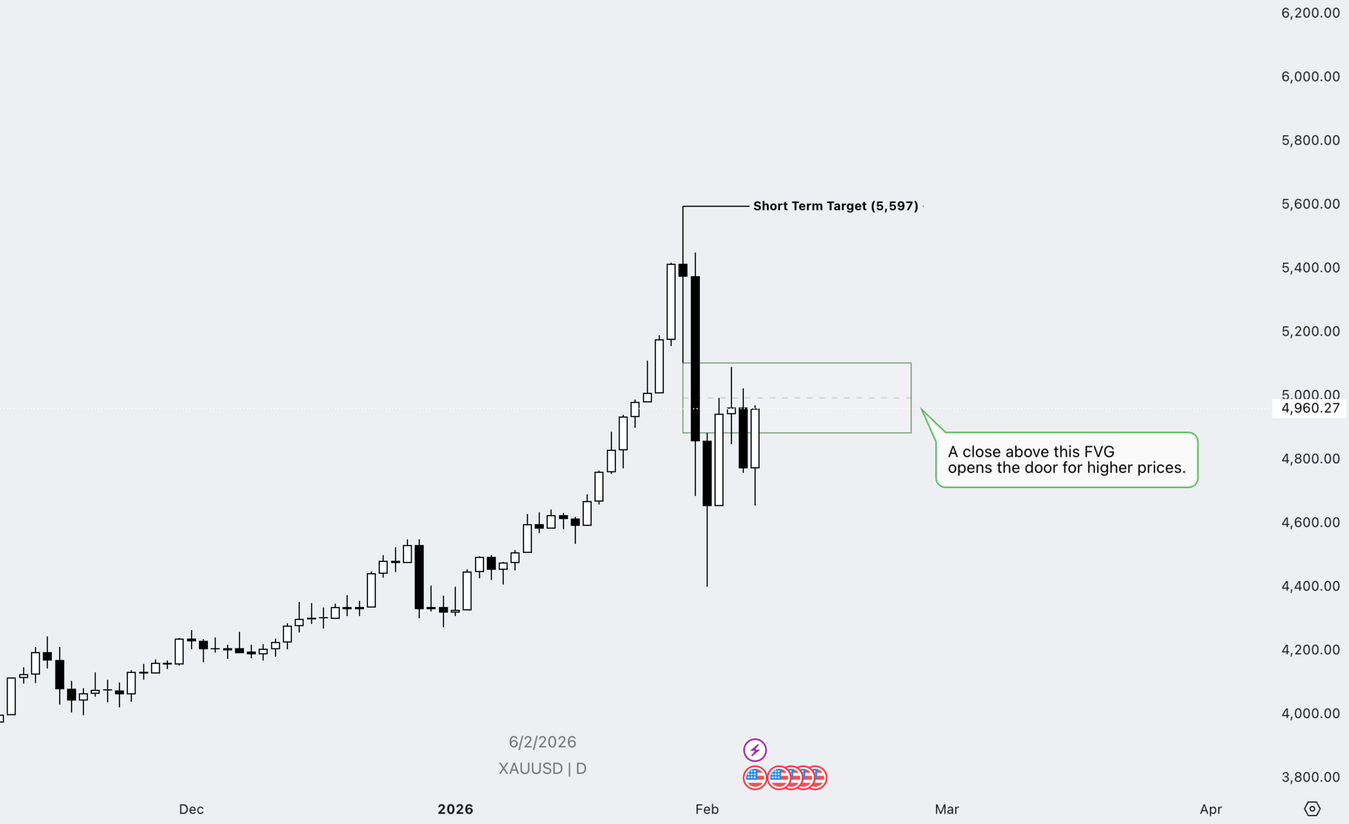 A daily close above the FVG opens the door for higher prices