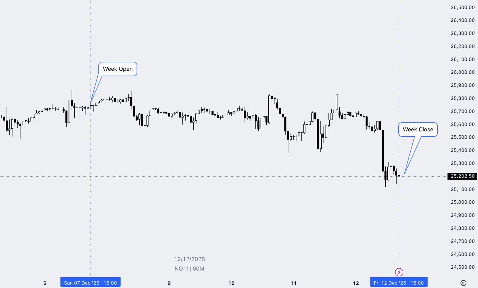 Last week: NQ traded as a rates-sensitive risk asset into the Fed meeting, with investors positioning for a rate cut that ultimately materialised. However, caution remained high — as any signal of less easing ahead than markets hoped was enough to tighten financial conditions and cap upside momentum quickly.