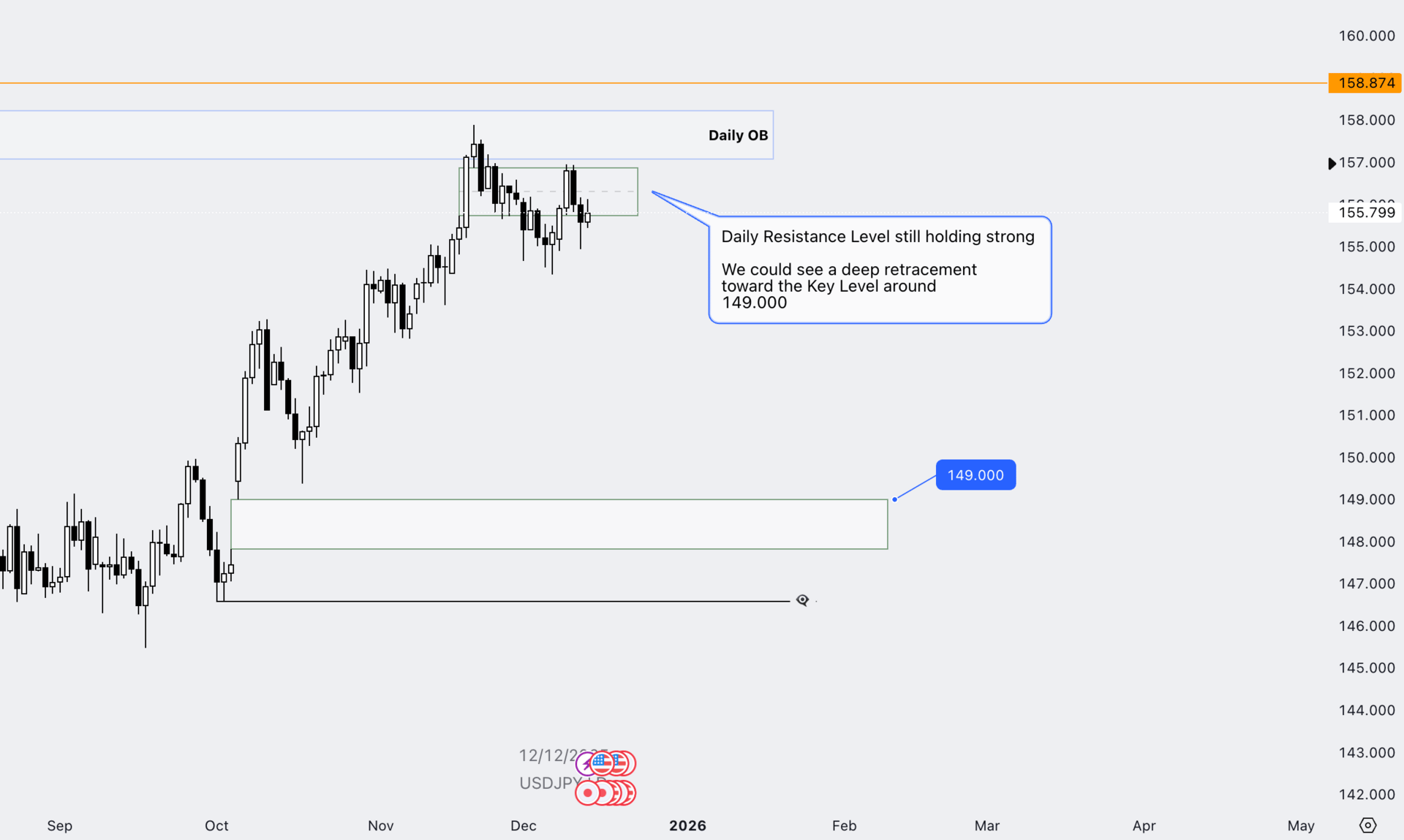 Failure to reclaim and hold above this zone opens the door for a deeper retracement, with downside liquidity sitting toward the 149.000 region.