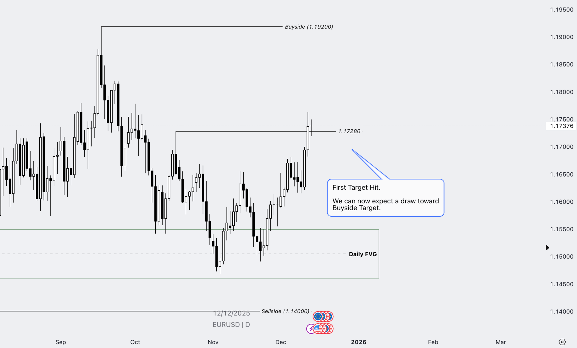 As long as price holds above the Daily FVG, the draw now shifts toward the buyside target.